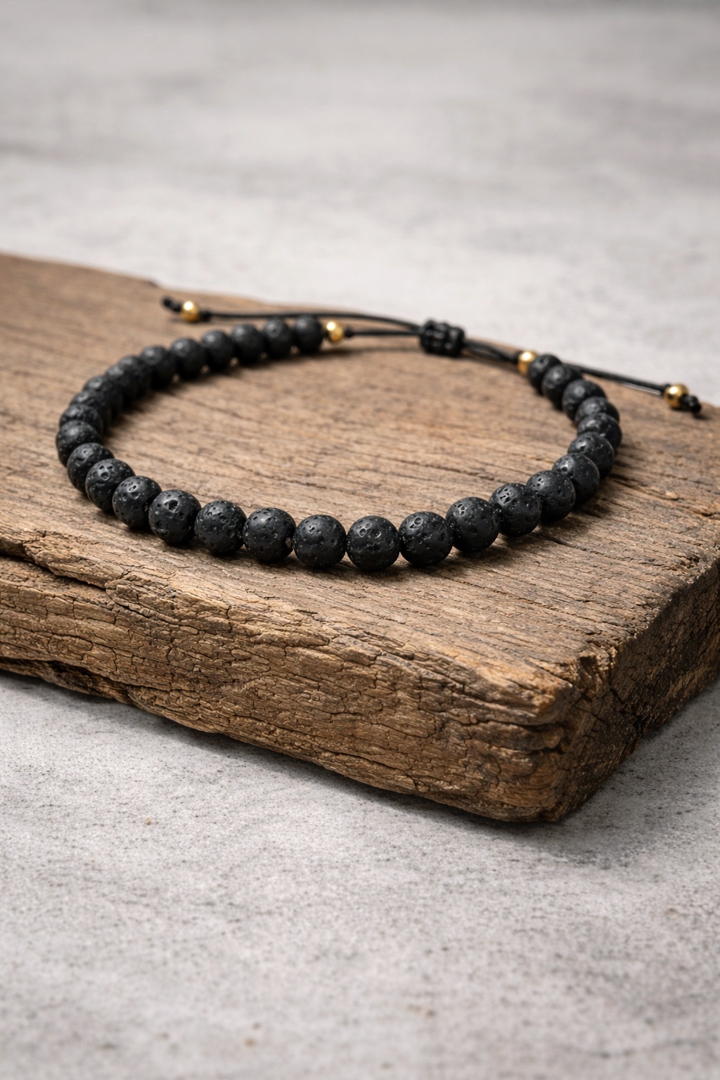 Bransoletka wykonana jest na czarnej nici nylonowej. Makramowe zapięcie pozwala dopasować ją do każdego nadgarstka.