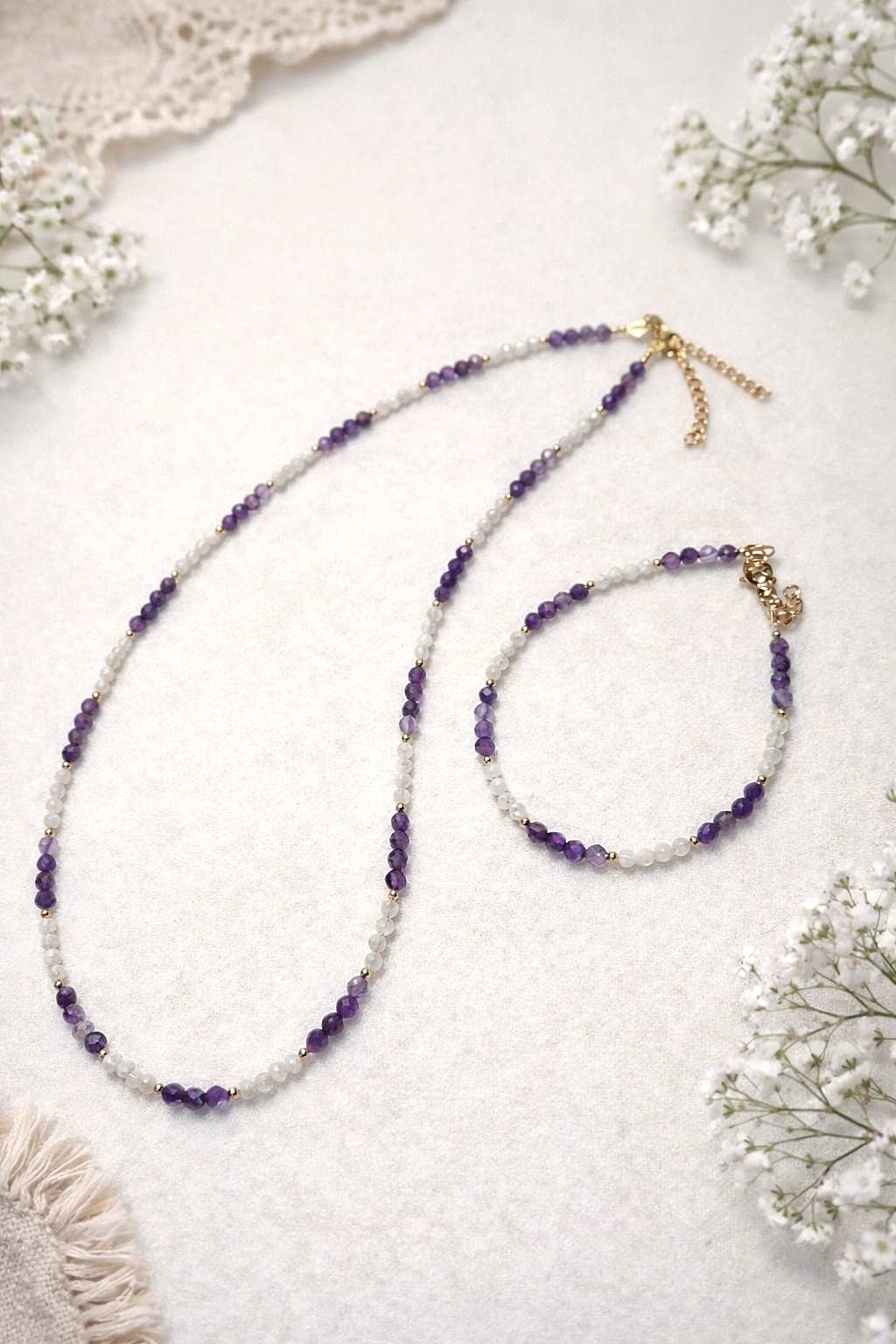 Ametyst – pomaga wyciszyć umysł i odzyskać wewnętrzny spokój. Wspiera równowagę i sprzyja głębszemu oddechowi.
