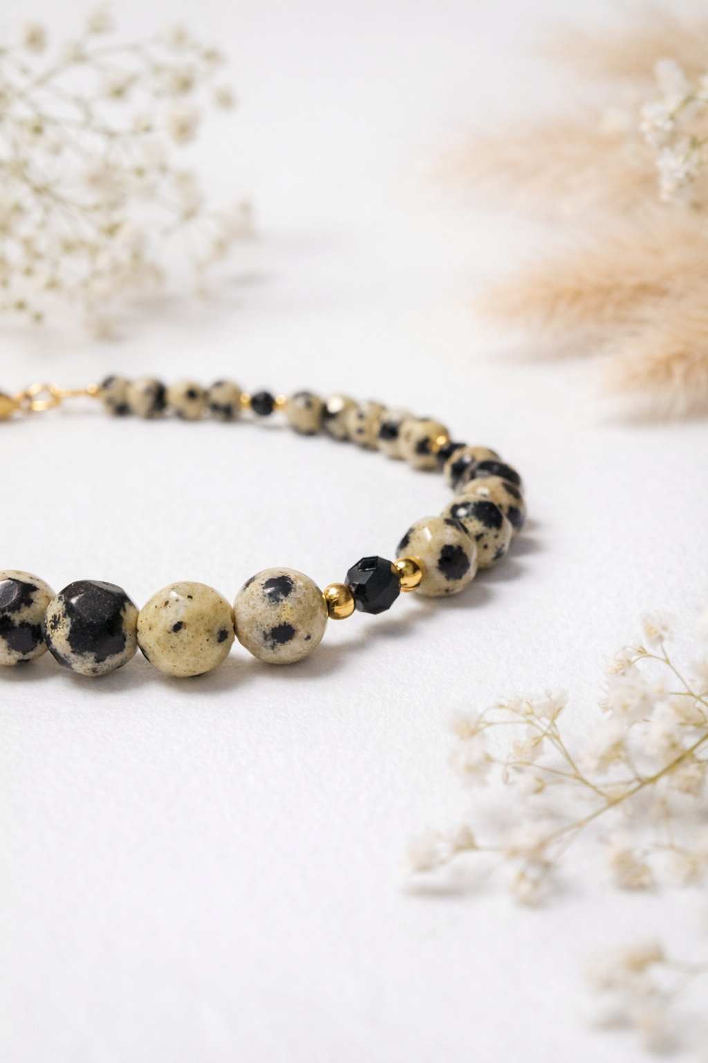 Ręcznie wykonana bransoletka z jaspisem dalmatyńskim i czarnym turmalinem
