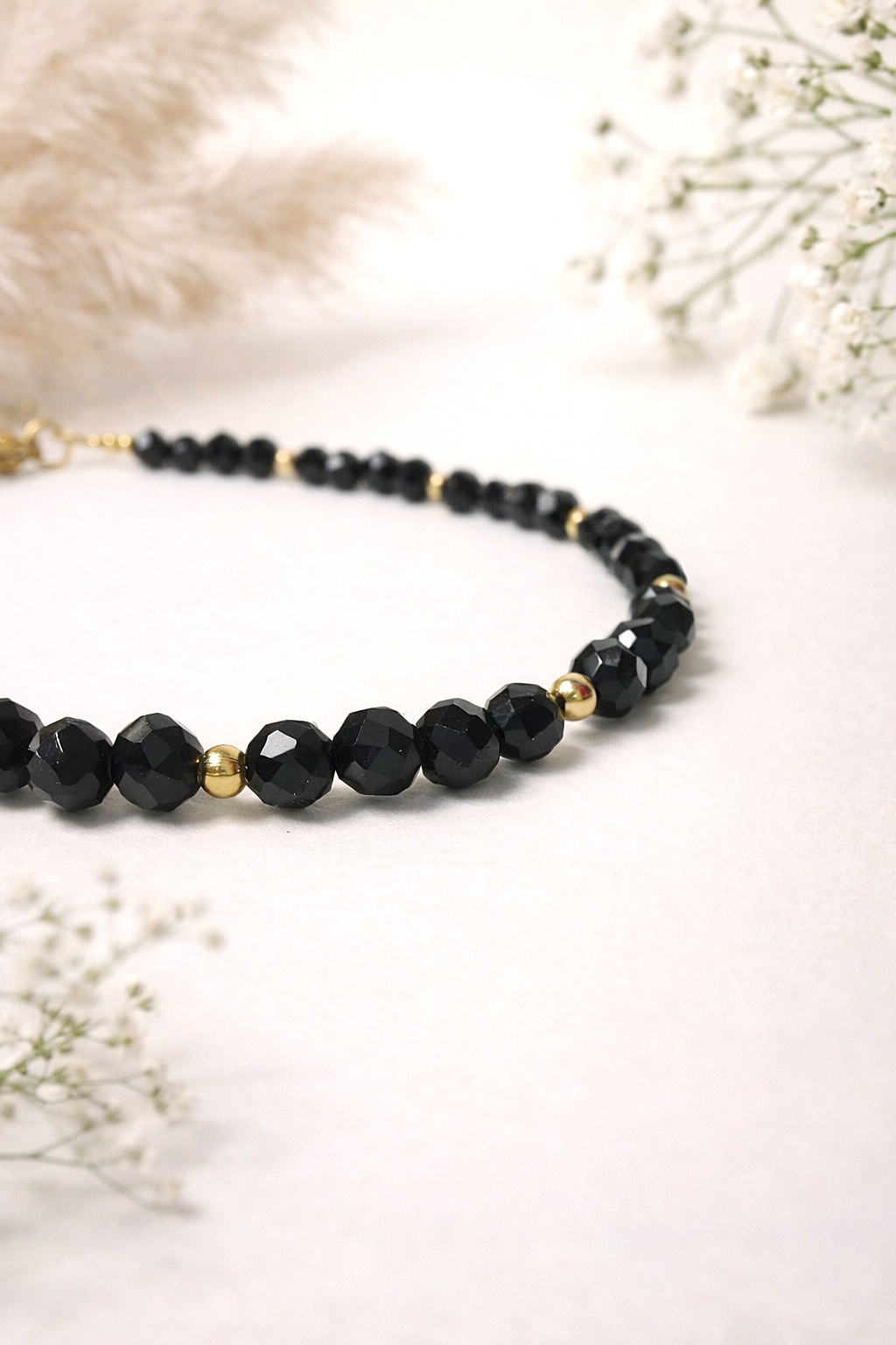 Czarny turmalin: Uważa się, że chroni on przed działaniem negatywnych energii pochodzących od innych ludzi i ze środowiska. Działa jak tarcza ochronna przed osobami, które nie mają względem nas dobrych intencji. Potrafi łagodzić stresy, pomaga odsuwać złe myśli i wszelki niepokój.
