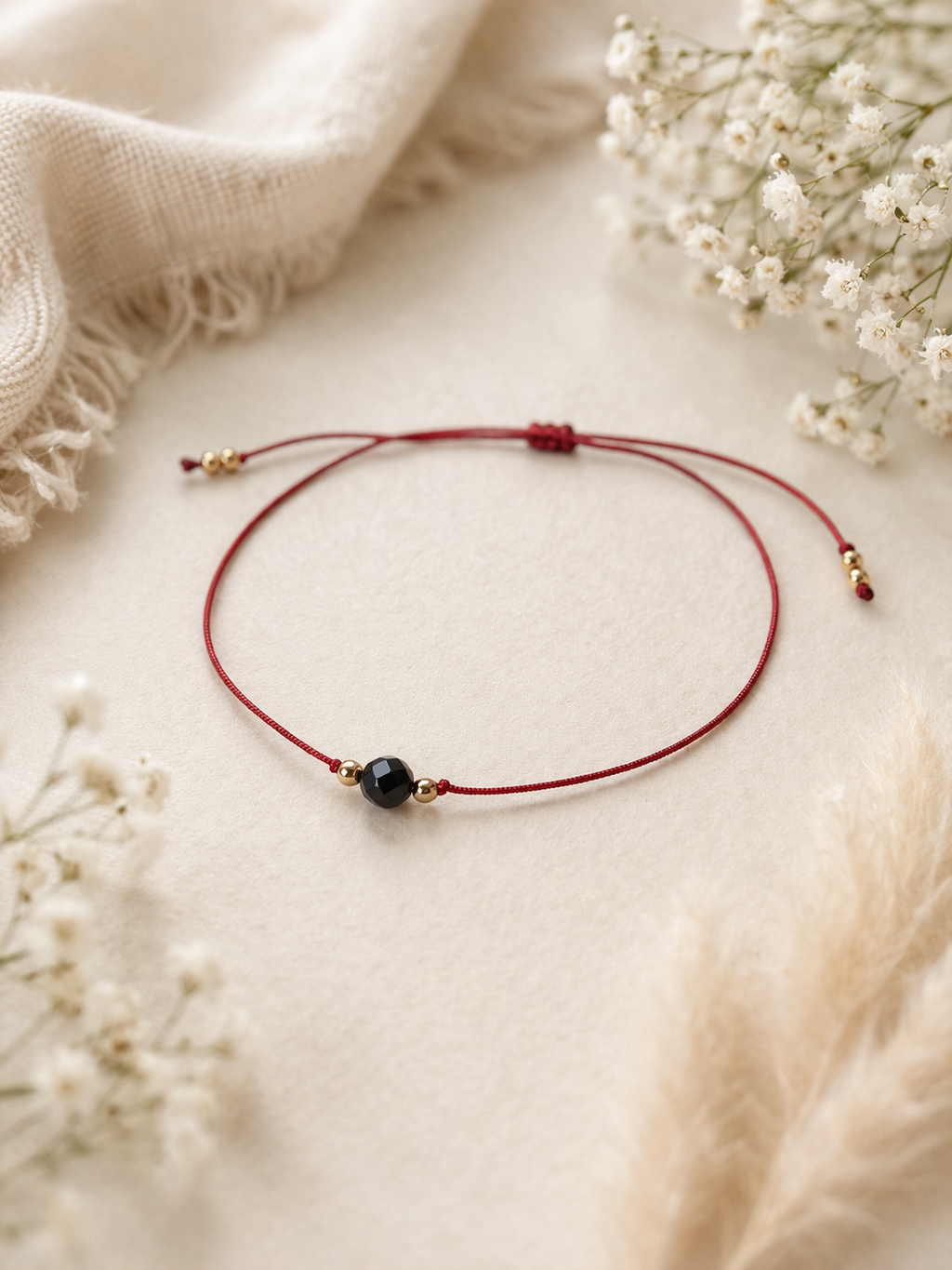 Czerwona nić od wieków uznawana jest za symbol ochrony i szczęścia, a czarny turmalin to jeden z najbardziej cenionych kamieni ochronnych. To połączenie sprawia, że bransoletka może towarzyszyć Ci na co dzień jako osobisty talizman.