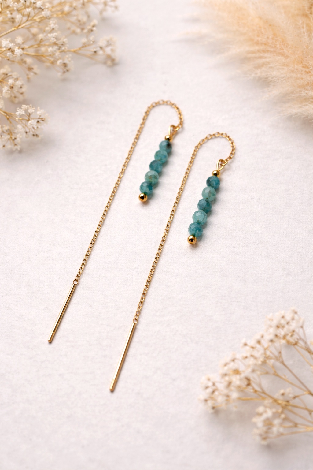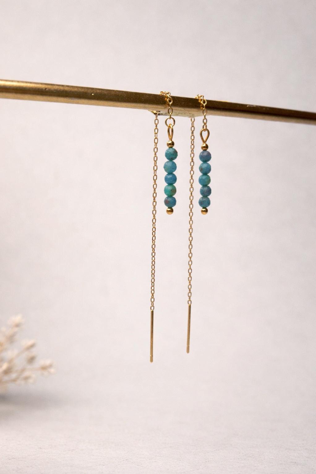 Kolczyki na cienkim łańcuszku ze stali, przekładane przez ucho.